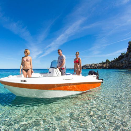 Magnífica lancha para 6 personas donde tu mismo puedes ser el capitán. Cómoda y fácil de manejar, perfecta para navegar cerca de la costa y disfrutar de las maravillosas calas que te ofrece la isla.